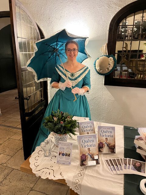 Die Autorin nahm ihre über 70 Zuhörer:innen mit auf eine Zeitreise ins 19. Jahrhundert und erzählte dabei auch die Geschichte, wie es dazu kam, dass der nahe Weinberg nach Königin Victoria benannt wurde und dessen Winzer seit nunmehr 175 Jahren Hoflieferant des britischen Königshauses ist.